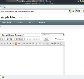 Opera 썸네일형 리스트형 Screenshot #090922 22:31 심심해서 찍어본 스크린샷입니다.오페라의 크롬테마, 정확히는 Cherry라는 이름의 테마에 플럭스박스의 창 테두리 없애기 기능을 해 보았습니다.물론 넷북이라서 저렇게 창 없애고 사용하지는 않습니다. 무조건 최대화.. 그래도 잘 안보이면 F11눌러서 진짜 최대화 ㅡㅡ; Chromium(Google Chrome의 오픈소스 프로젝트) 리눅스용 snapshot 버전을 계속 테스트중인데 오페라의 고질적인 한글입력문제가 없어서 좋네요.하지만 마우스 제스쳐, 스피드연결, 암호저장기능이 아직 너무 미흡해서 오페라를 떠날 수는 없습니다.그리고 가끔 엄청나게 버벅대는 사이트들이 있더군요. 사용 환경은 Eeepc 1000H에 ArchLinux + Fluxbox를 돌립니다. 더보기 Opera 10 사용상의 문제점 안녕하세요. 재즈벌레입니다. 오페라 10 스냅샷의 패치 속도를 보니 정식버전 출시가 얼마 남지 않은 것 같습니다. 오페라 10의 장점이야 궂이 말로 하지 않아도 다들 아시리라 생각하구요, 지금까지 제가 Opera 10을 사용해 오면서 생긴 몇가지 문제점에 대해서 적어보려고 합니다. 1. 텍스트큐브닷컴 블로그를 이용하고 있는데 로그인을 해도 글 수정 등의 버튼이 보이질 않습니다.이미지가 흐려서 잘 보이지는 않지만 하얗게 하이라이트 된 부분을 보시면 오페라만 매뉴가 없습니다.Adsweep 문제였습니다. 자바스크립트가 텍큐와 충돌하나보네요. Adsweep을 해제하니 정상적으로 보입니다. 광고 제거는 불편하더라도 일일이 수동으로 해줘야겠네요. 2. 거의 사용하지는 않지만 얼마전 업데이트 된 새로운 네이버 메일에.. 더보기 한중일 (CJK) Font set Opera Browser 10 Snapshot for Linux 이전 글에서 리눅스용 오페라 10 브라우저(테스트 버전 Opera 10 Snapshot 4458)의 CJK 글꼴 설정에 관련된 font.ini 파일에 대해 이야기를 했었는데 오늘 확인해 보니 적용이 됩니다. 오페라 한국 포럼에는 리눅스용 오페라에 관한 글이 전무하여 일본, 중국 포럼에 올라오는 글들을 참고로 했는데요. 어제 제가 테스트해 본 바로는 한글 설정이 전혀 먹히지 않아 font.ini 자체가 아직 적용이 안되는걸로 판단했었는데 오늘 심심해서 중국어 글꼴을 변경해 봤더니 잘 되네요. (그림 1)내친김에 일본어도 변경해 보니 역시나 적용이 됩니다.(그림 2)분명 어제도 스냅샷 4458이었고 오늘도 4458인데 갑자기 되는건가? 라는 생각이 들면서 한글도 변경해 보았습니다... 만 안되더군요. 중국어.. 더보기 Opera 10.00 Snapshot font.ini 요 몇일 오페라 글꼴 설정때문에 삽질을 하고 있는데, 지금 결론은 아직 더 기다려 보기로 했다.윈도우 버전에는 없지만 리눅스 버전에는 원래부터 있던건지 아니면 10 버전부터 생긴건지 font.ini라는 전역설정 파일이 있다.파일의 구조를 들여다보면 fonts.conf처럼 선호하는 글꼴을 매치시킬 수가 있도록 되어있다. 얼마나 반가운 일인가. 이전까지만 해도 리눅스에서 오페라를 쓰려면 멍청하게 보이는 글꼴 때문에 노가다를 좀 해줘야 했었는데 전역설정파일이라니...하지만 몇일 동안 저 파일을 붙잡고 개삽질을 해 봤지만 변화가 없다. 리눅스에서 오페라 브라우저의 글꼴 문제 때문에 검색을 좀 해보면 대부분 [User Prefs] ... Enable Xft=0 Enable Core X Fonts=0 를 추가해 주.. 더보기 Opera Browser Korean Language Translation lol 오페라 10이 베타로 올라온지 수일이 지난 지금.Archlinuxfr에 올라왔던 Opera-Snapshot이 버전업을 하면서 한글 로케일이 빠져버려 어쩔수 없이 9.xx대의 한글 로케일 파일을 설치해서 사용해 왔다. 하지만 번역되지 않은 부분이 여간 신경쓰이는게 아닌가...Opera-Snapshot 알파 버전까지만 해도 한글 로케일이 포함되어 있었는데 왜 빠졌을까?그래서 구버전을 뒤져봤더니 역시나 여기도 9.xx대의 로케일을 사용하고 있었다.파일을 열어보니 번역한 사람이름이 외국인이다. 음? 음...뭐 언젠가는 올라오겠지라고 생각하고 있었지만 왠지 무진장 오래 걸릴 듯 한 느낌이 든다.그래서 대충 내 눈에 보기 좋게 마구잡이로 되지도 않는 번역을 시작...후.. 어렵다.. ㅋㅋ영어 잘하는 사람이 언젠간 .. 더보기 Opera Mouse Gesture 마우스 사용 마우스는 강력한 마우스 제스처와 유연한 끌어 놓기 작업을 할 수 있고, 링크를 클릭하는 것 보다 더 많은 것을 위해 사용할 수 있습니다. 기본 마우스 사용 단추를 활성화하고, 웹 페이지에 링크에 사용하고, 패널에서 항목을 열려면, 왼쪽 단추를 한번 클릭하십시오. 링크 또는 북마크를 새 탭으로 열려면 클릭한 상태에서 열기위하여 클릭하는 동안 Shift 키를 누르십시오. 또한 Ctrl 키를 누르면, 새 탭을 활성 탭의 위에 여는 대신에 배경으로 열 수 있습니다. 웹 페이지 요소 뿐 아니라 Opera의 브라우저 요소의 대부분도 여러 옵션을 가진 그들 자신의 컨텍스트 메뉴를 가지고 있습니다. 컨텍스트 메뉴를 표시하려면, 오른쪽 단추를 클릭하십시오. 컨텍스트 메뉴 활성 사용자가 선택하고자 하는 텍스트.. 더보기 메인 웹 브라우저 변경! Great Opera Browser!! 위 그림은 오페라 브라우저 10 에서 포스팅하는 모습입니다.그동안 GTK2 관련 어플들만 고수해 오다가 Skype 때문에 설치된 QT4를 어떻게 한 번 써먹어 볼까 고민하다가 Opera Browser를 설치해 봤습니다.현재